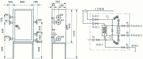 ③SCKl—IC型液体在线式采样器■适用范围:本采样器适用于各种粘度、强腐蚀性的高温、易燃液体介质的采样。使用温度:-20~425℃,工作压力:0~6.4Mpa■使用方法:(1)先将采样器出液口处的冷却器接入冷却液;(2)将贮样瓶口对准采样器的出液管口;(3)逆时针方向慢慢旋转采样器的手柄至出液口流出介质为止;(4)待样品采完后,立即顺时针方向旋转采样器的手柄至丝杆全部旋入为止。