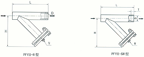 (1)Y型铸造螺纹连接式(PFYI-R型)、承插焊接式(PFYI-SW型)(DNl5—50,PN≤5.0Mpa)
