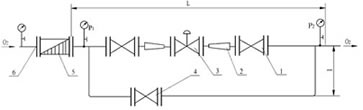| 附图1 设独立阀门室的氧气压力调节阀组示意图 |
